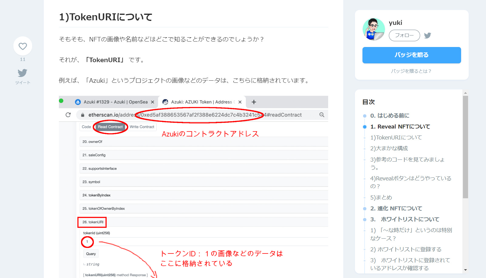 たとえば今回はAzukiを使いましたが、NFTの画像はコントラクト内にどのような形でデータが入っているのか、
